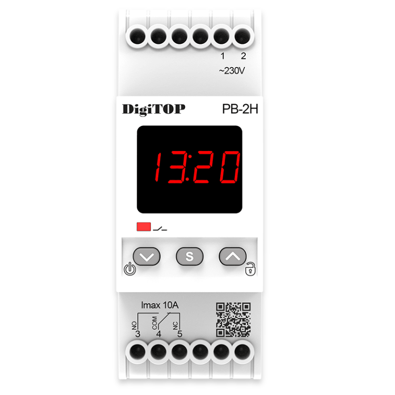 Реле часу РВ-2Н призначене для автоматичного включення і відключення виконавчих пристроїв (системи поливу, освітлення і т.д.) в задані користувачем моменти астрономічного (реального) часу. Реле часу має тижневий цикл роботи. Користувач може встановити до 16 міток (вмикання або вимикання) на кожен день тижня.
