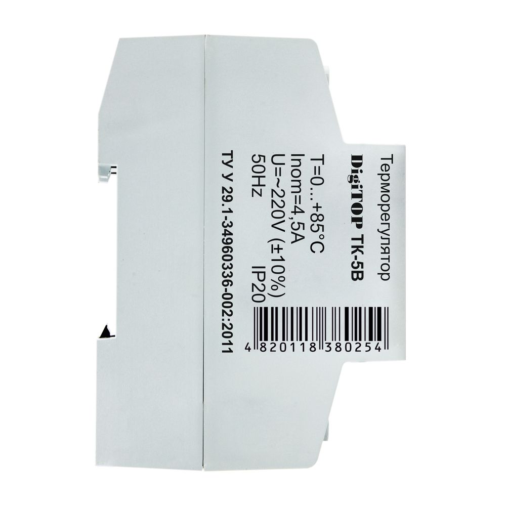 Трьохканальний терморегулятор DigiTOP ТК-5В. Монтується на DIN-рейку. Призначений для управління електричними системами опалення (ТЕНові, електродні котли). Контролює температуру подачі і обратки теплоносія, а також додатково обладнаний датчиком для контролю температури повітря в опалювальному приміщенні.